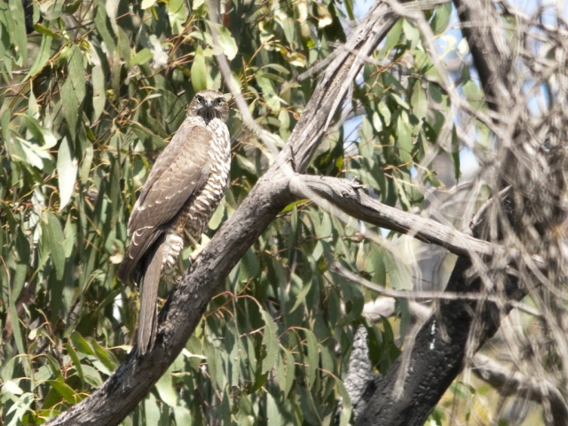 My Sunday walk yielded two queries. Just after leaving home, a very shy bird of prey. At first I thought Peregrine Falcon but there is no dark head? I'm sure one of you will know straight off. The back of the head was a bit grey and it seemed very big compared to the Nankeen Kestrel that has been around here lately. Looked twice as big but I guess that it couldn't be.